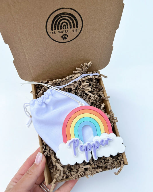 Rainbow Dog Paw Stained Glass Memorial