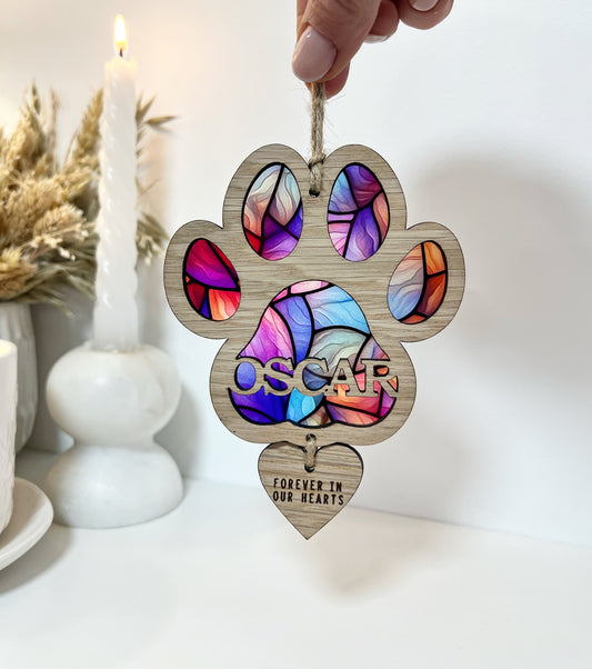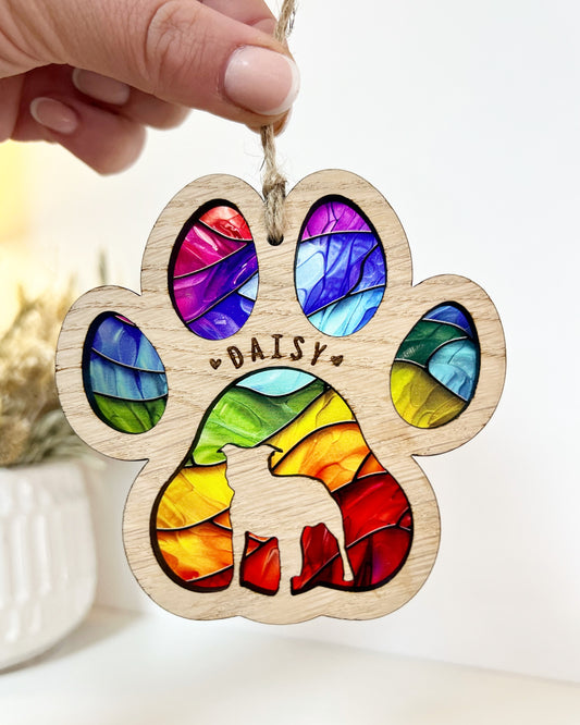 Dog Paw Stained Glass Memorial
