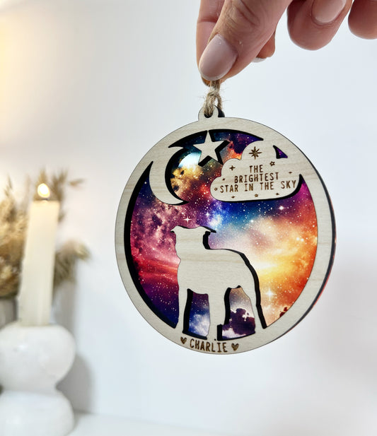 Dog Christmas memorial glitter star