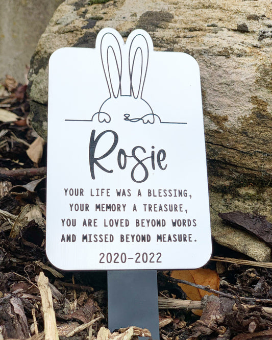 Personalised rabbit grave marker, Rabbit memorial plaque, Rabbit memorial sign, Rabbit memorial gift, Rabbit loss gift, Outdoor memorial