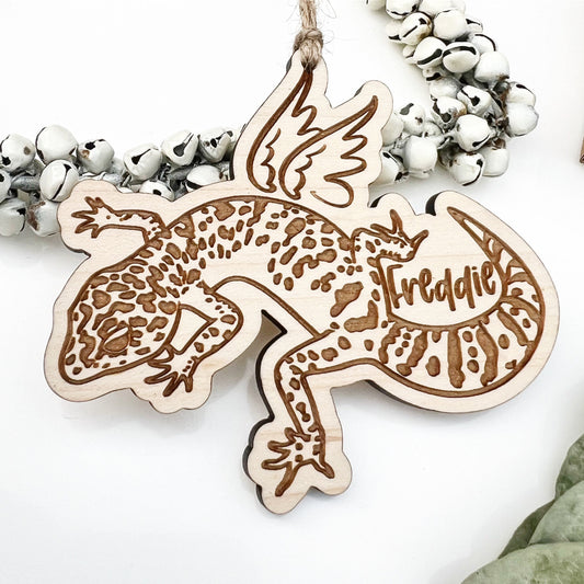 Personalised memorial gecko with angel wings, Custom leopard gecko Memorial ornament, Leopard gecko gift, Reptile lover gift, Gecko keepsake