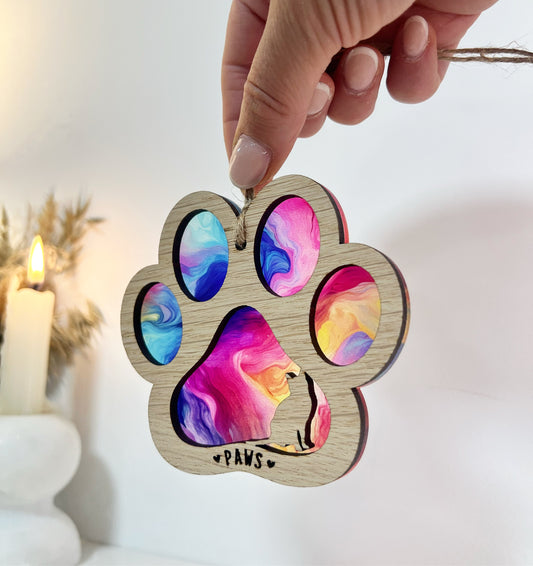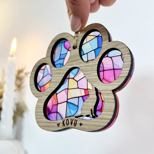 Pink Cat Paw Stained Glass