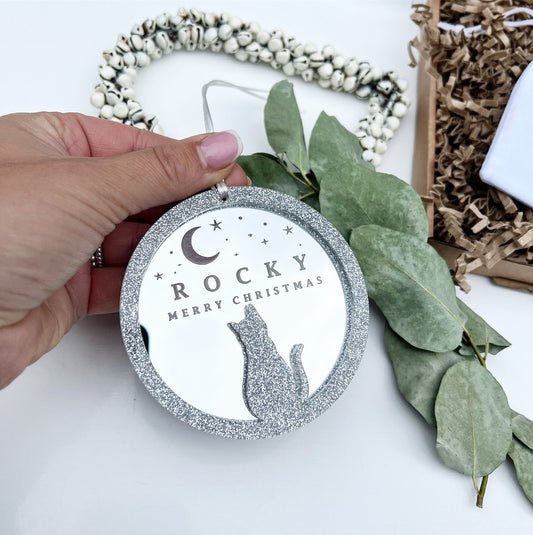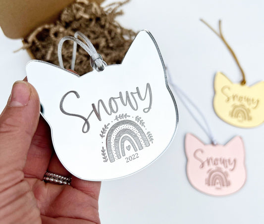 Personalised cat Christmas ornament, Cat Christmas decoration, Rainbow Bridge, Cat memorial gift, Cat lover gift, Silver cat ornament