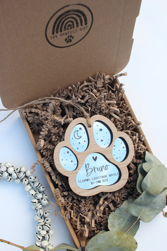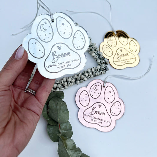 Paw Christmas ornament, sending Christmas wishes